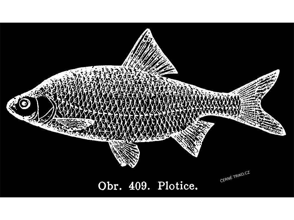 - Jemný a vzdušný potisk plotice, plevelné ryby podle staré rytiny. Potisk je vytištěn tenkou bílou čarou a díky tomu působí zajímavě. Plotice je dobrý dárek pro zkušeného rybáře.
